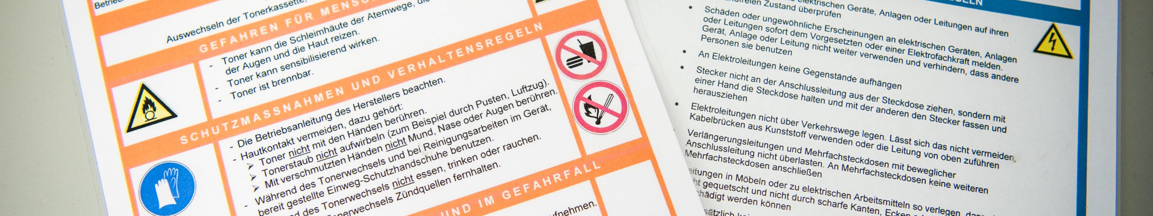 The legal basis for the creation of operating instructions can be found in § 20 GefStoffV, § 4 ArbSchG and § 9 BetrSichV.