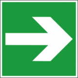 Beispiel für Rettungswegnotausgang mit Zusatzzeichen Richtungspfeil